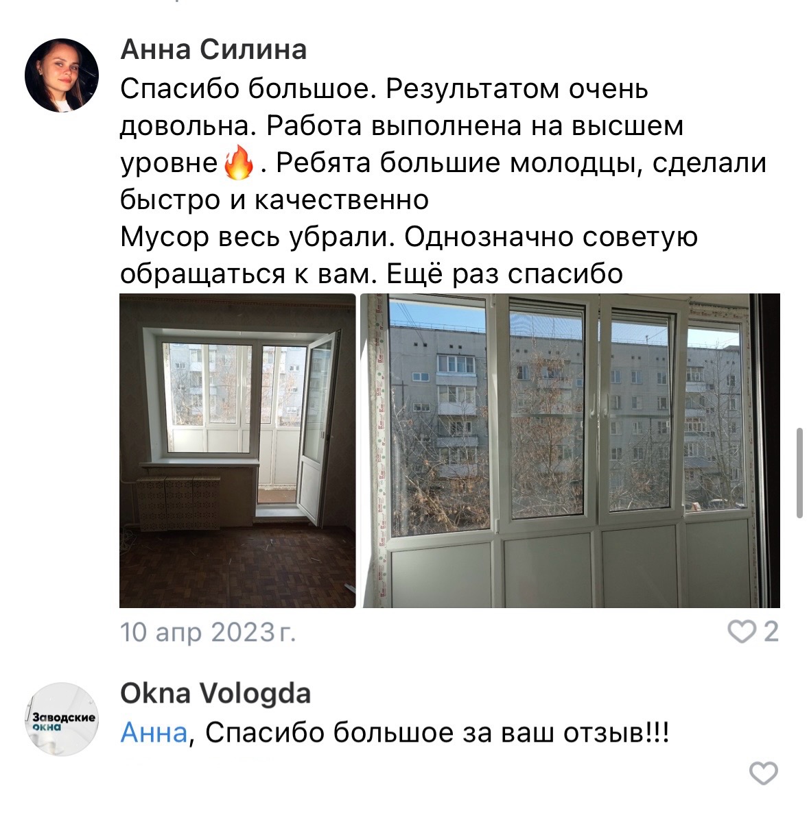 ✓ Монтаж окон возможен до температуры -18°C